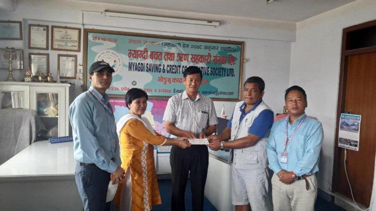 म्याग्दी, २९ असार । काठमाण्डौस्थित गोगंवुमा संचालित म्याग्दी बचत तथा ऋण सहकारीद्धारा म्याग्दीस्थित मराङ र विमका बाढी पहिरो पीडितहरुलाई ८० हजार